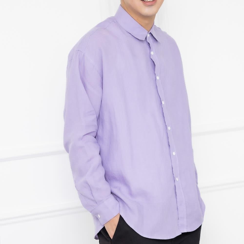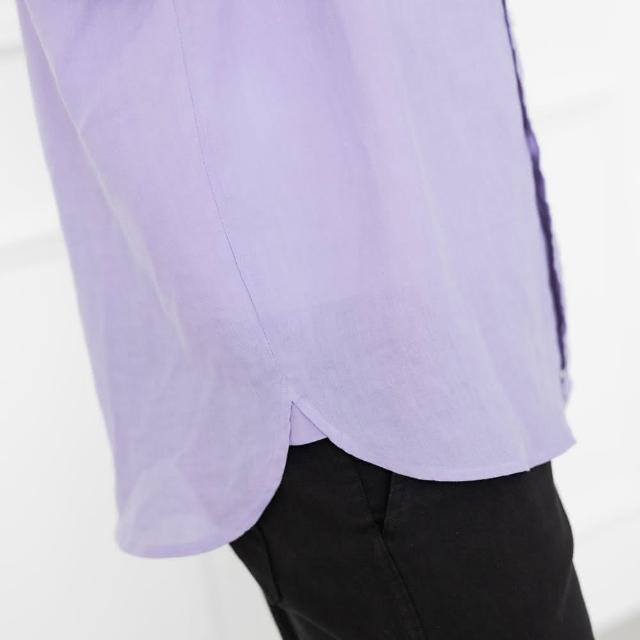 韓國顯瘦 / 立領全開襯衫長袖上衣 / 紫色