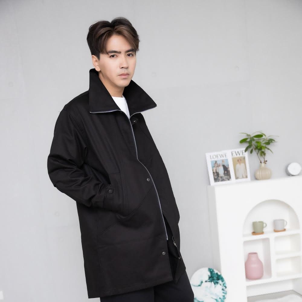 韓國顯瘦 / 翻領長外套 / 黑色