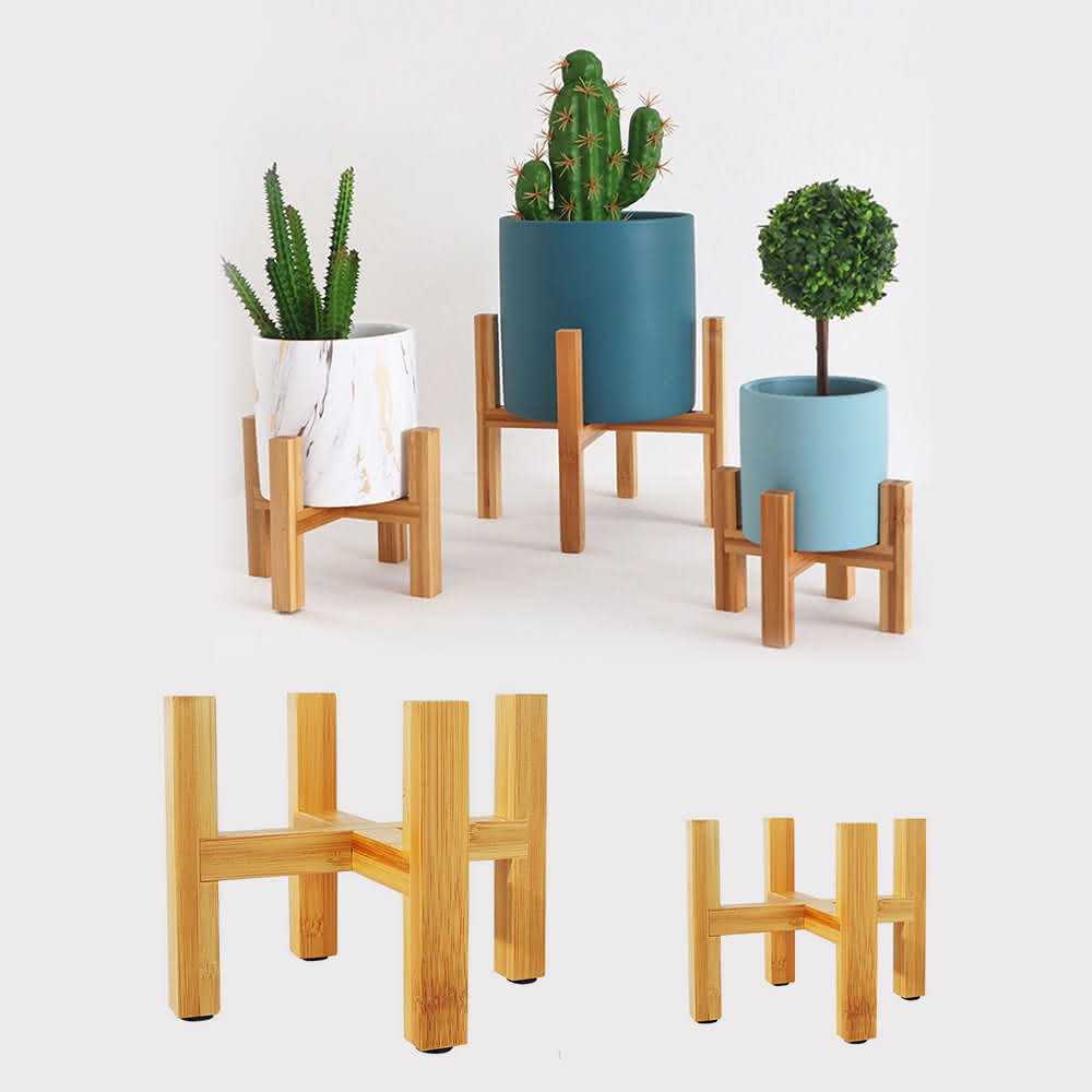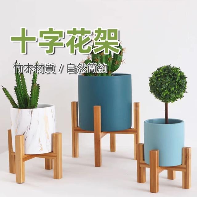 威揚購物十字花盆架 中號盆栽架(14*11公分)(陽臺落地式花架 竹製盆栽架子 高腳花架 四角花架 花托)
