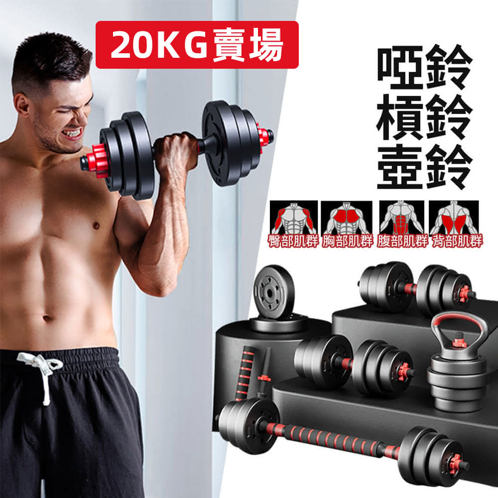 啞鈴 槓鈴 壺鈴三合一20KG
