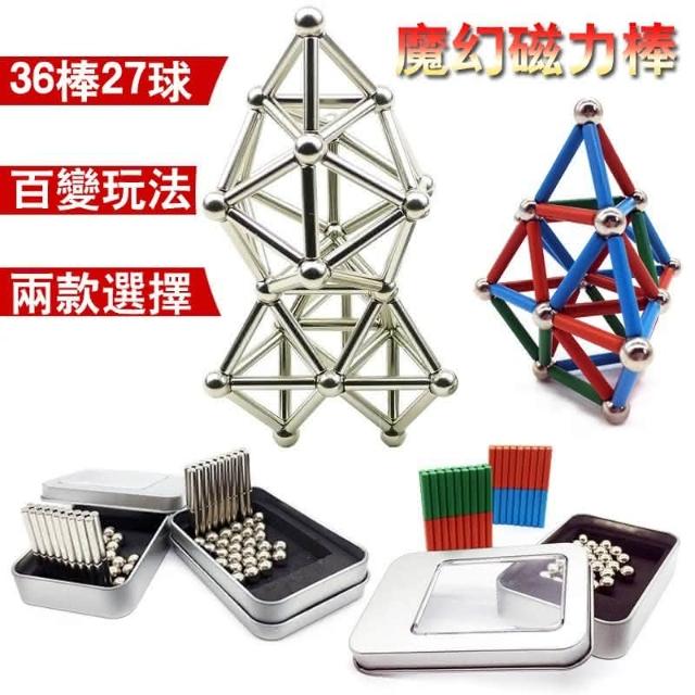 兒童益智磁力積木63件套 36磁力棒+27顆鐵球 (磁力棒/磁鐵積木/百變磁力棒/磁力建構片)