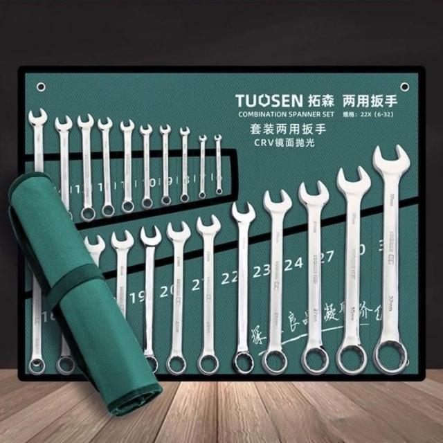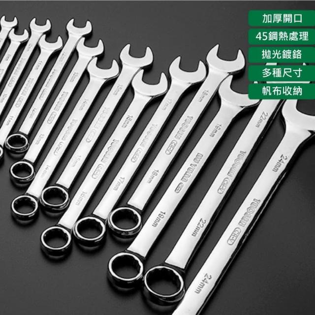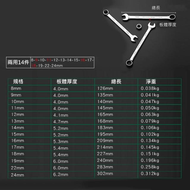 拓森 梅開板手 鏡面14件組 開口扳手 梅花扳手 兩用扳手 兩用扳手 8-24MM AJ296