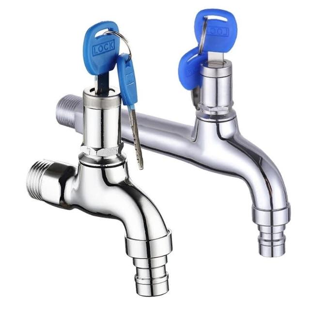 防盜水龍頭 加長款13.5MM 全銅 帶鎖 水龍頭 單冷 洗衣機4分口 上鎖 防盜 附鑰匙 AK222