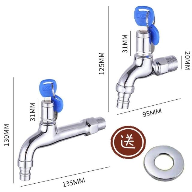 防盜水龍頭 加長款13.5MM 全銅 帶鎖 水龍頭 單冷 洗衣機4分口 上鎖 防盜 附鑰匙 AK222