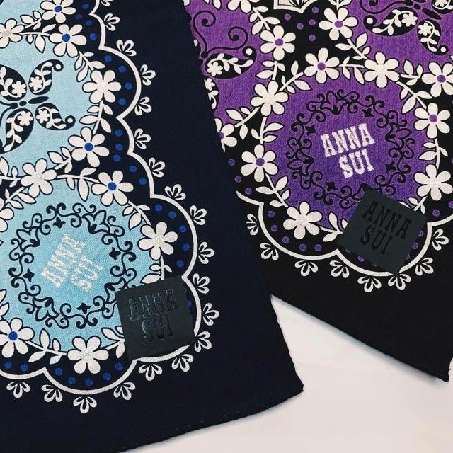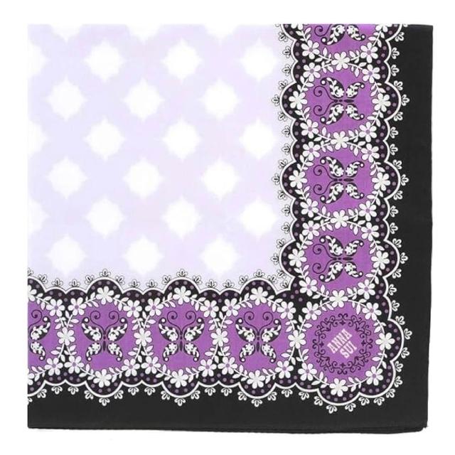 ANNA SUI 安娜蘇日本製 精品手帕 紫色純綿手帕 印花手帕 領巾 髮帶(台灣現貨)