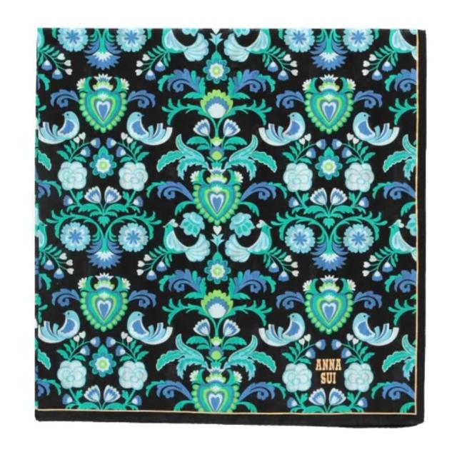 ANNA SUI 安娜蘇日本製 精品手帕 藍綠色 純綿手帕 印花手帕 領巾 髮帶(台灣現貨)
