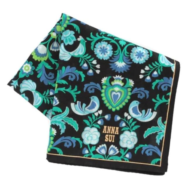 ANNA SUI 安娜蘇日本製 精品手帕 藍綠色 純綿手帕 印花手帕 領巾 髮帶(台灣現貨)