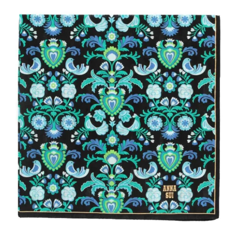 ANNA SUI 安娜蘇日本製 精品手帕 藍綠色 純綿手帕 印花手帕 領巾 髮帶(台灣現貨)