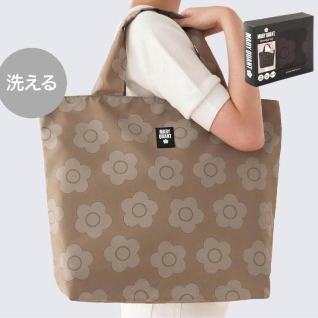 英國 MARY QUANT 瑪莉官 環保折疊收納袋 日本進口(肩背 手提兩用 摺疊購物包 環保袋 可水洗購物袋)