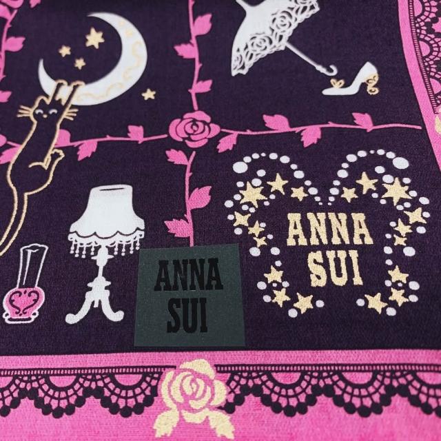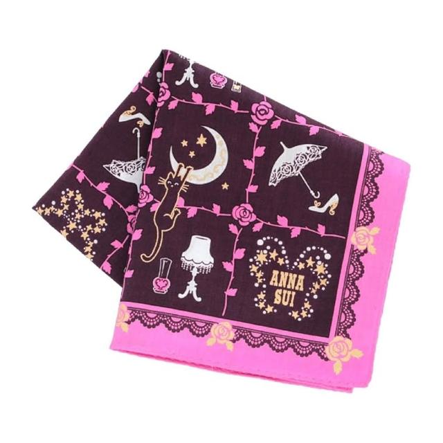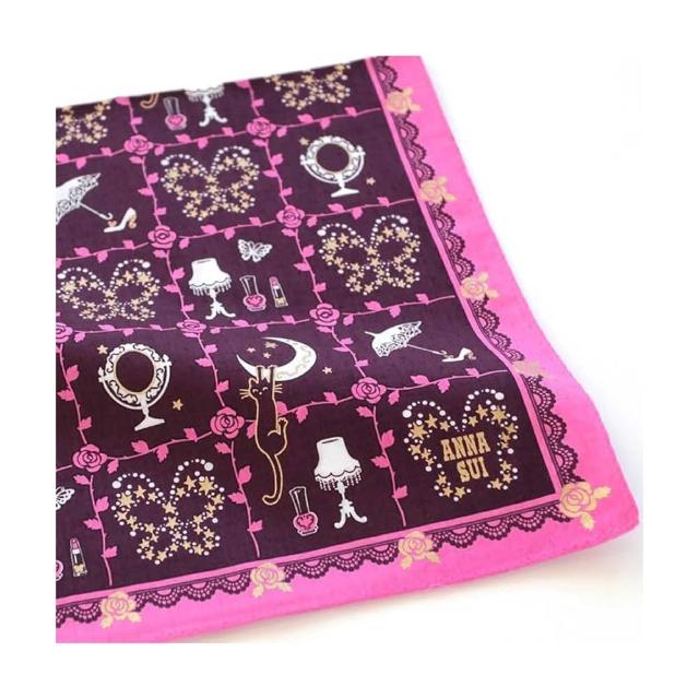 ANNA SUI 安娜蘇精品圖案印花手帕 洋紅色 精品手帕 純棉手帕 日本製 手帕 台灣現貨
