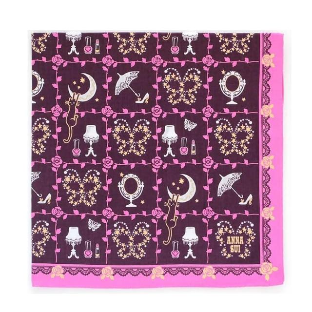 ANNA SUI 安娜蘇精品圖案印花手帕 洋紅色 精品手帕 純棉手帕 日本製 手帕 台灣現貨