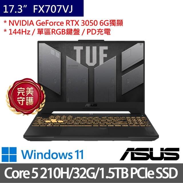 ASUS 華碩特仕版 17.3吋電競筆電(TUF Gaming F17 FX707VJ/Core 5 210H/16G+16G/512G+1TB SSD/RTX3050 6G/Win11/二年保)
