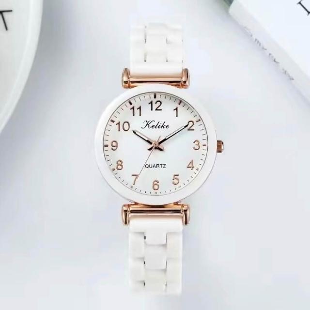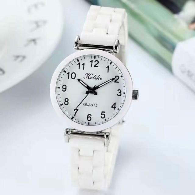 現貨 夜光仿陶瓷手錶女孩國高中學生韓版簡約白防水考試專用錶清新數字(手錶)