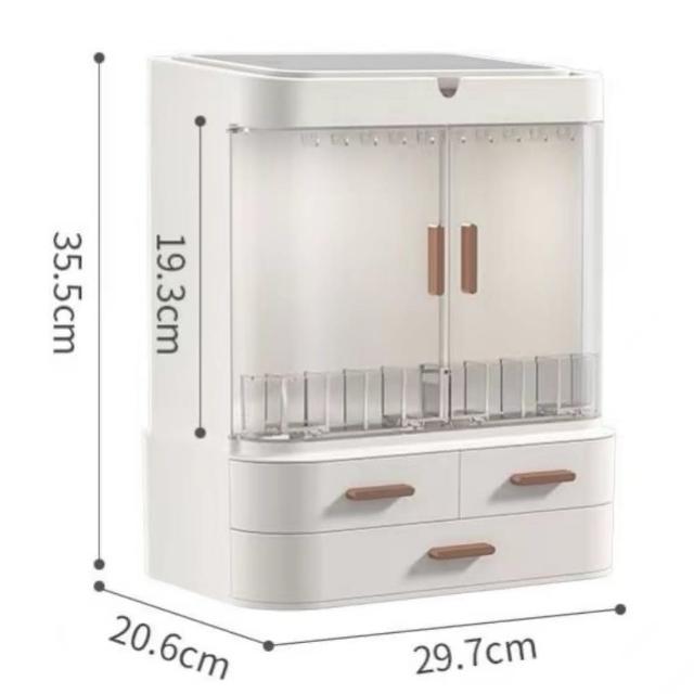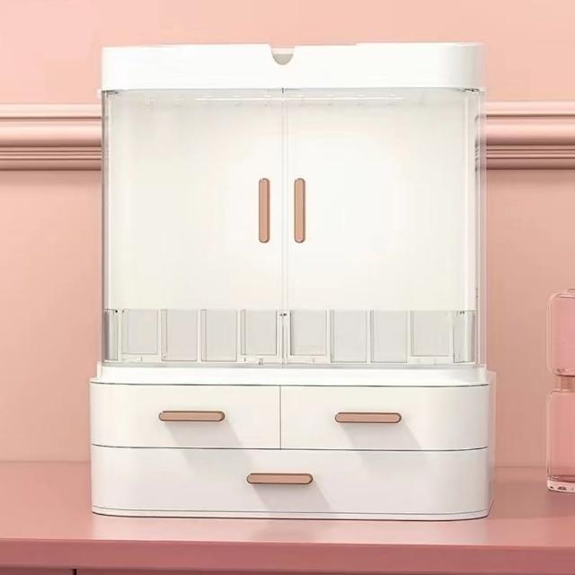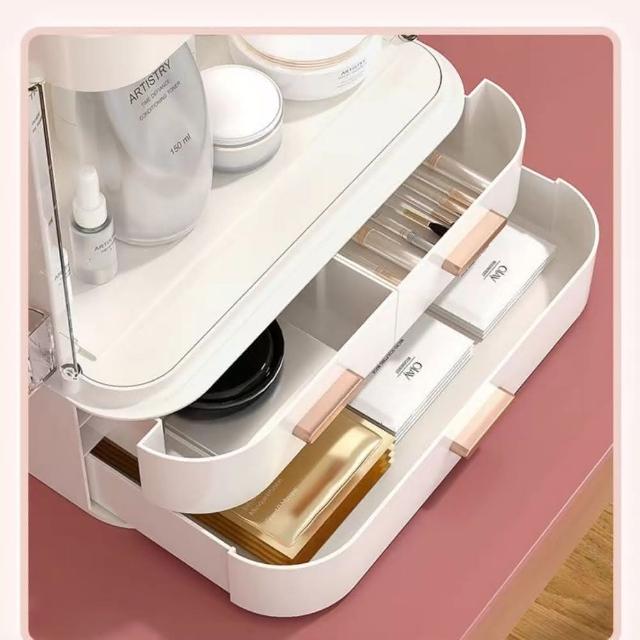 現貨 帶燈化妝品收納盒防塵抽屜式護膚品家用大容量桌面收納面膜口紅(化妝收納盒 化妝收納 彩妝盒)