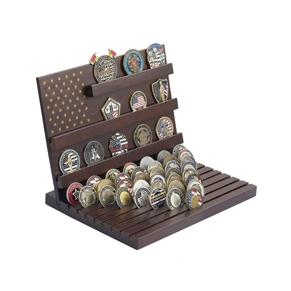 🔥新北現貨🔥硬幣收納架 硬幣存放 紀念幣展示架 桌麵展示 木質紀念幣硬幣收納架多層勛章展示架木質奬章勛章展示架收藏夾