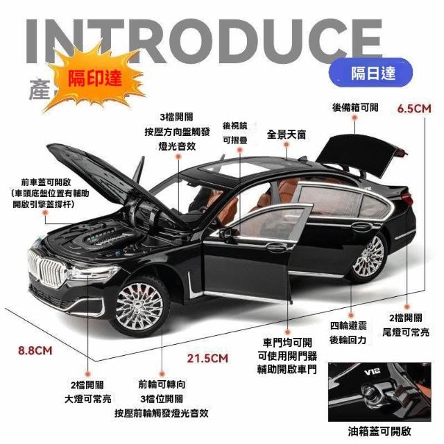 BMW模型車 汽車模型 玩具車 閤金車 寶馬 閤金汽車 聲光玩具車 迴力車 1:24 寶馬7係 車模型 仿真閤