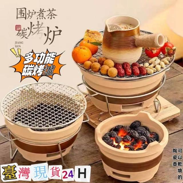台灣現貨 圍爐煮茶烤爐日式碳爐 圍爐煮茶陶土炭爐戶 陶瓷爐小烤爐炭爐 木炭碳爐圍爐煮茶陶土炭爐戶外爐竈日式泥爐燒烤爐傢用