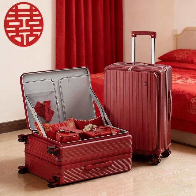 前翻蓋深倉旅行箱 紅色陪嫁行李箱 結婚旅行箱 隨身行李子母箱 28吋高級感訂婚密碼箱 嫁妝箱 20吋登機箱 萬向輪拉桿箱