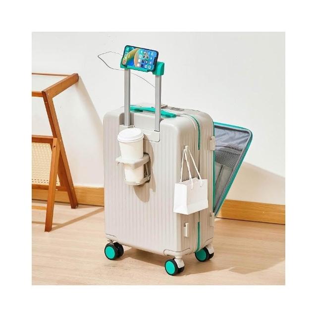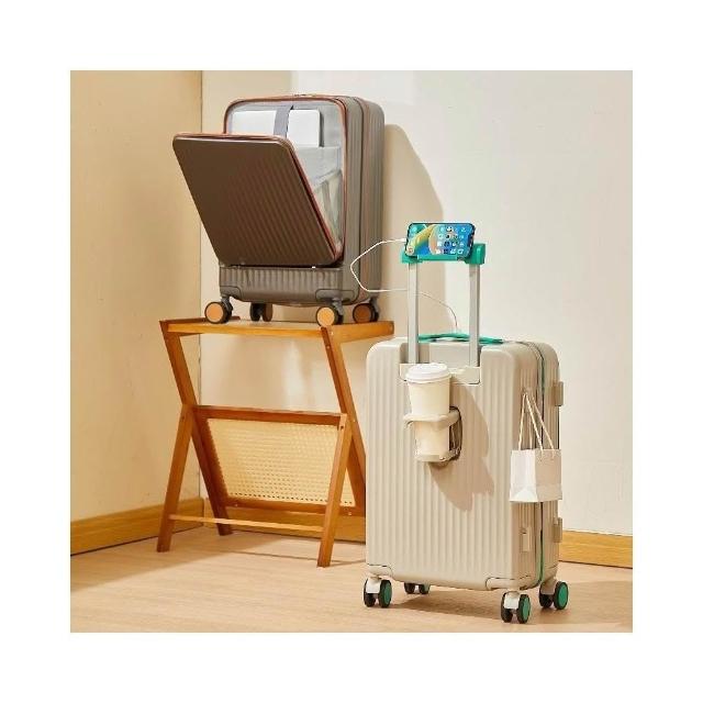 免運手機支架款行李箱 可充電 拉鏈旅行箱 萬向輪行李箱 前開蓋行李箱 多功能輕量 20吋登機箱前翻蓋拉桿箱