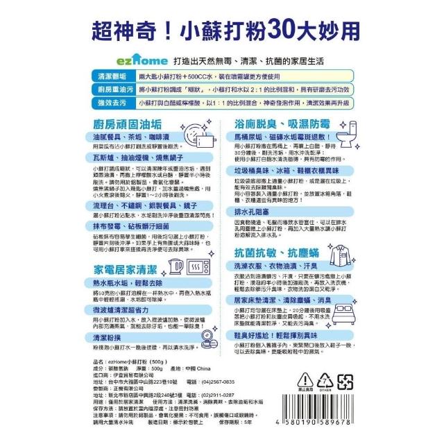 《日本天然無毒清潔神器》萬用小蘇打粉500g/食用級/去污/除臭/清潔劑/碳酸氫鈉/廚房頑強油垢/