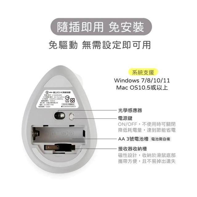 aibo人體工學 直立式垂直靜音滑鼠 Type-C/USB雙介面 垂直滑鼠 靜音滑鼠 無線滑鼠 人體工學滑鼠