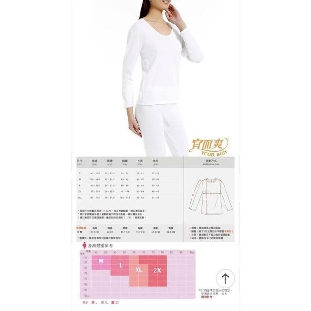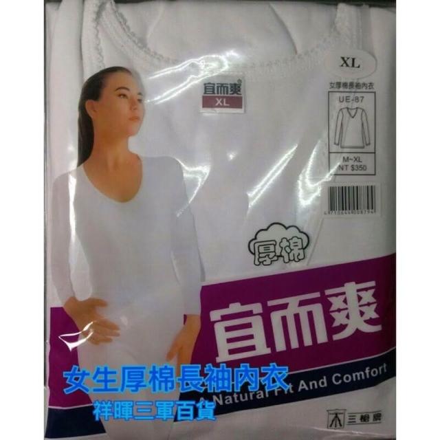 女厚棉長內衣 三槍牌宜而爽 圓領U領長袖內衣 白長袖內衣 宜而爽女長袖衛生衣 三槍牌