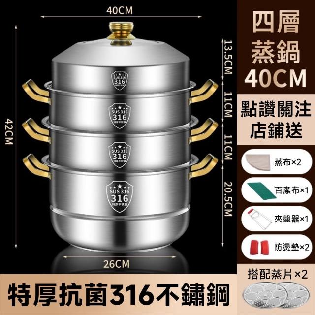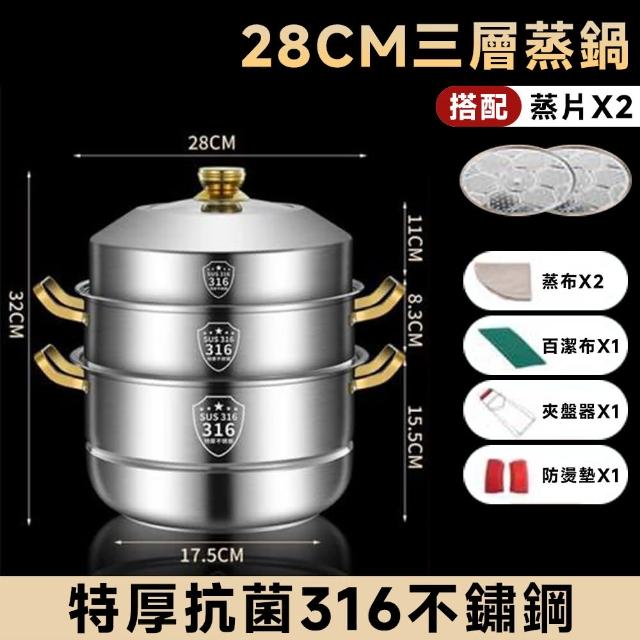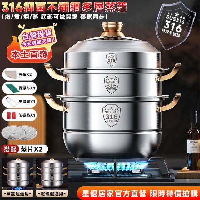 STAR·U星優品牌店 蒸鍋 蒸籠 蒸籠鍋 316不鏽鋼醫用級(瓦斯爐電磁爐通用 附蒸片 三/四層 28/30/32/36cm多尺寸選擇)