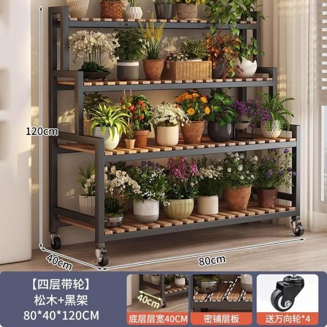 STAR·U星優品牌店 落地花架 陽台花架 盆栽架 花盆架 可移動層架(80cm/120cm帶輪子 層高可調 加高底座)