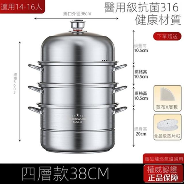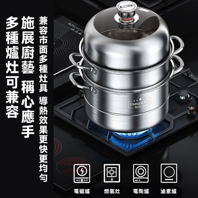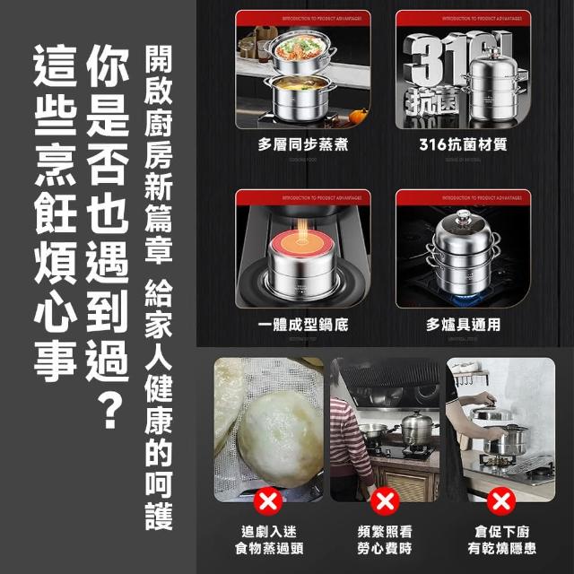 STAR·U星優品牌店 蒸鍋 蒸籠鍋 蒸籠 定時蒸鍋 湯蒸鍋 湯鍋 蒸煮鍋(自動計時器-316不鏽鋼 防燙加厚一體 多尺寸選擇)
