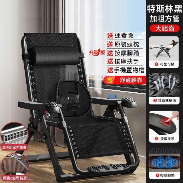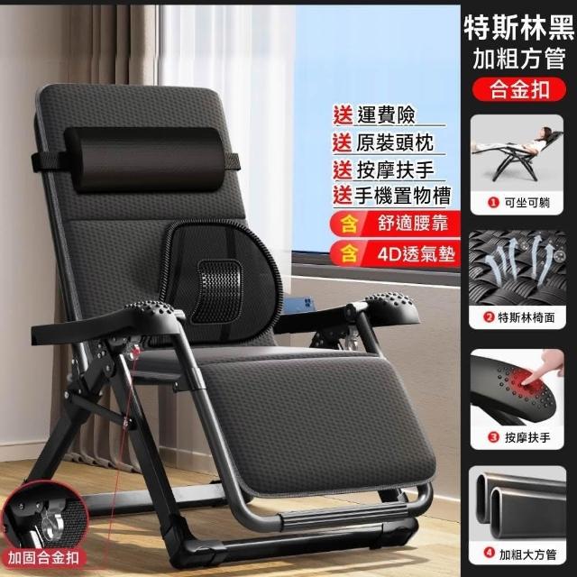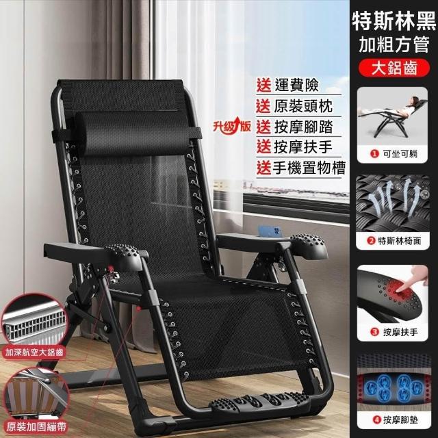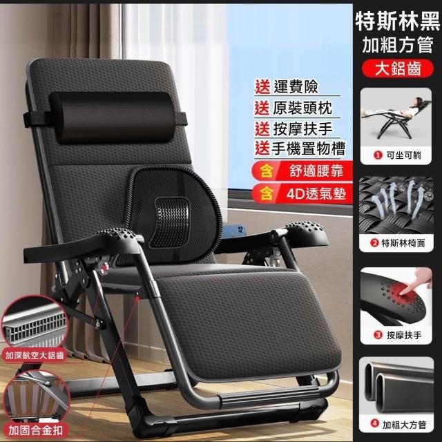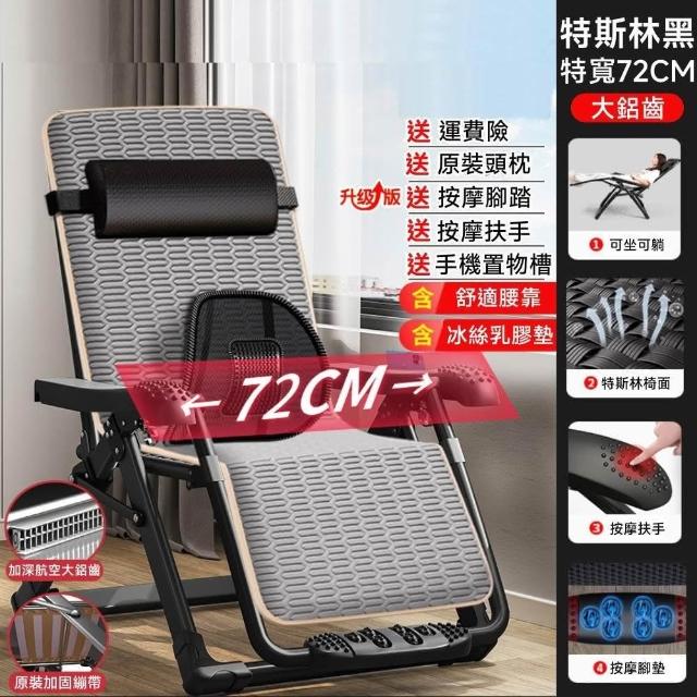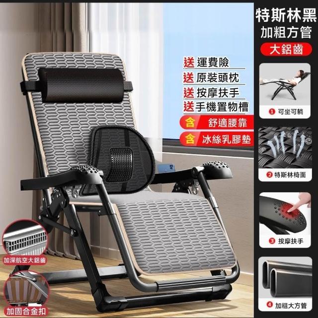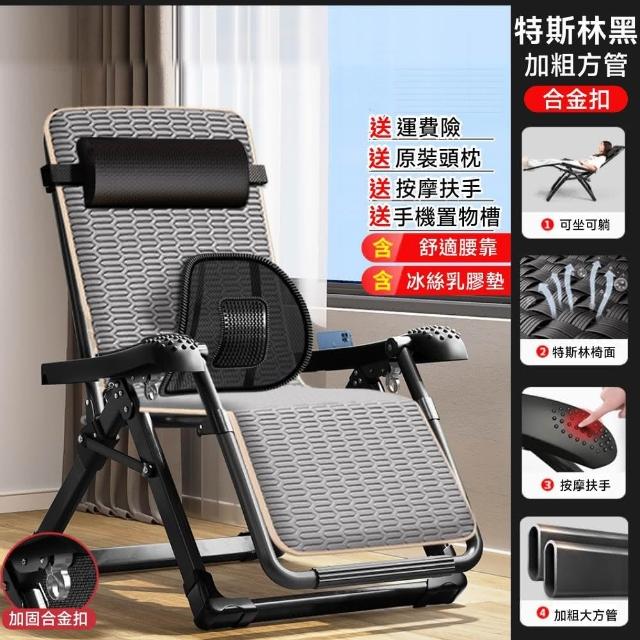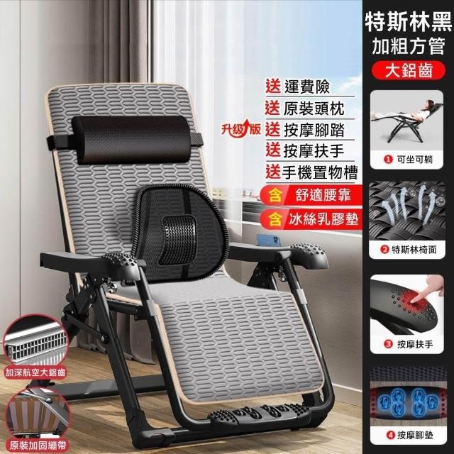 STAR·U星優品牌店 躺椅 折疊躺椅 冰絲乳膠墊 透氣椅面 午睡椅(自帶按摩扶手/腳踏 送頭枕/腰靠/置物槽)