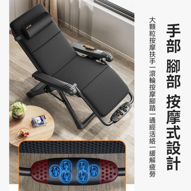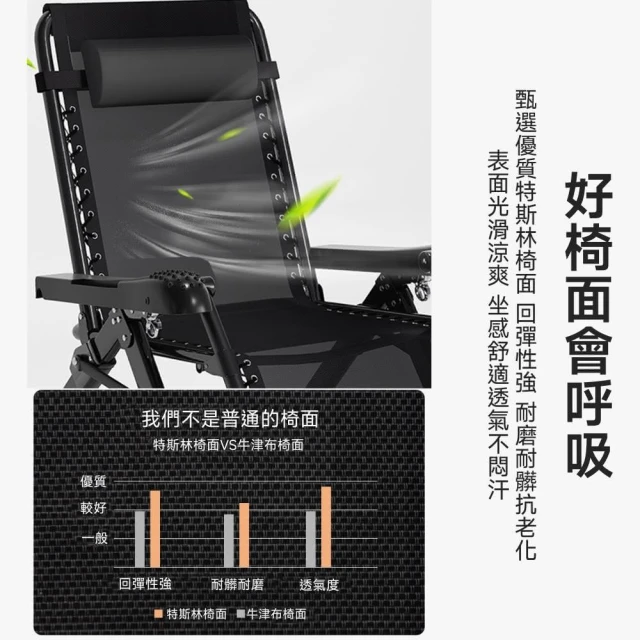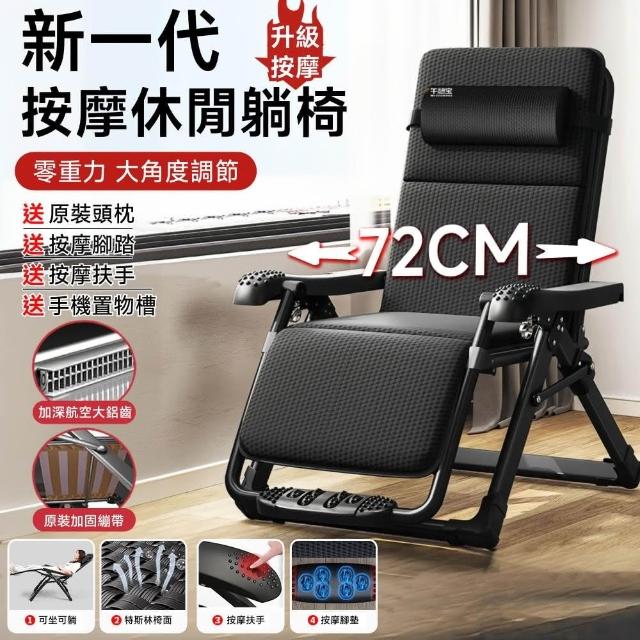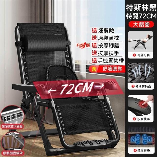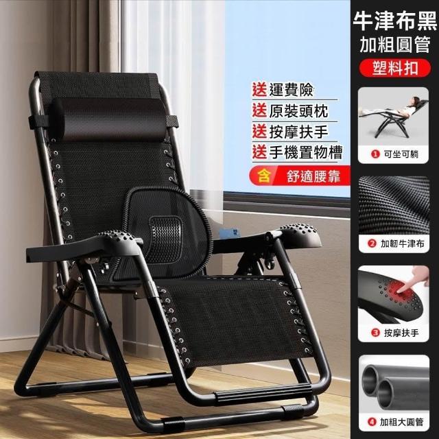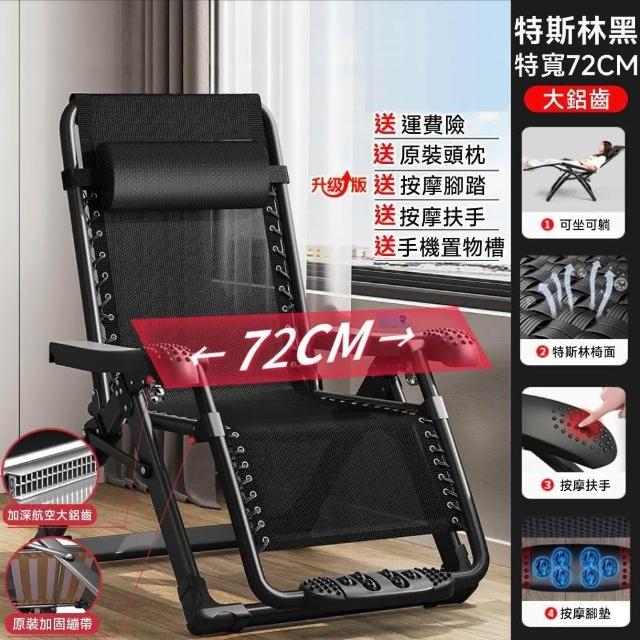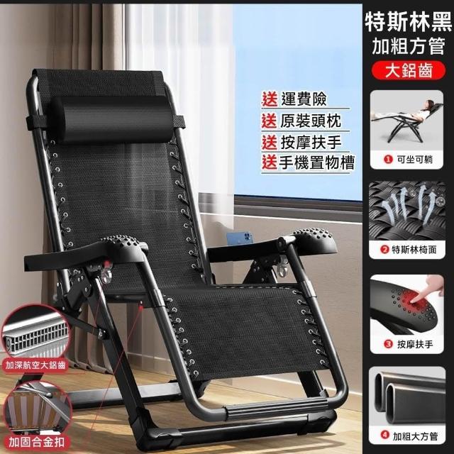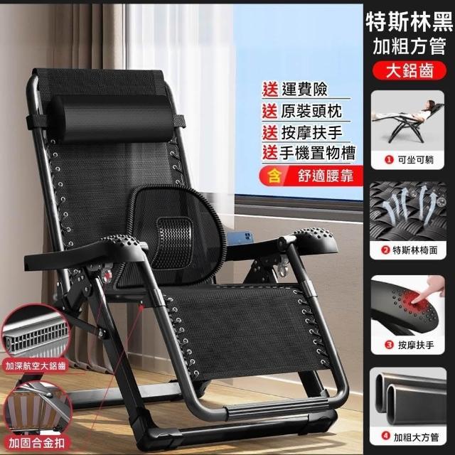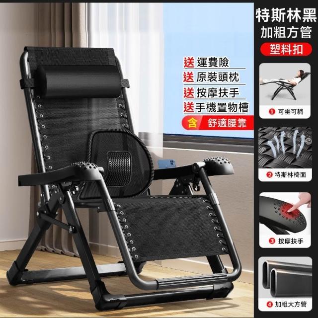 STAR·U星優品牌店 躺椅 折疊躺椅 冰絲乳膠墊 透氣椅面 午睡椅(自帶按摩扶手/腳踏 送頭枕/腰靠/置物槽)
