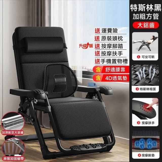 STAR·U星優品牌店 躺椅 折疊躺椅 冰絲乳膠墊 透氣椅面 午睡椅(自帶按摩扶手/腳踏 送頭枕/腰靠/置物槽)