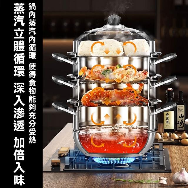 STAR·U星優品牌店 316防燙手柄蒸鍋 蒸籠鍋 蒸籠 蒸鍋 湯鍋(蒸汽立體循環加熱 28cm兩層)