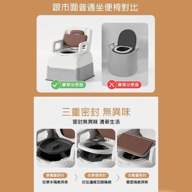 STAR·U星優品牌店 坐便器 行動馬桶 臥室便盆 馬桶 老人孕婦便盆椅 可掀蓋馬桶椅 緩降(棕色硬墊-沙發墊+實心桶)