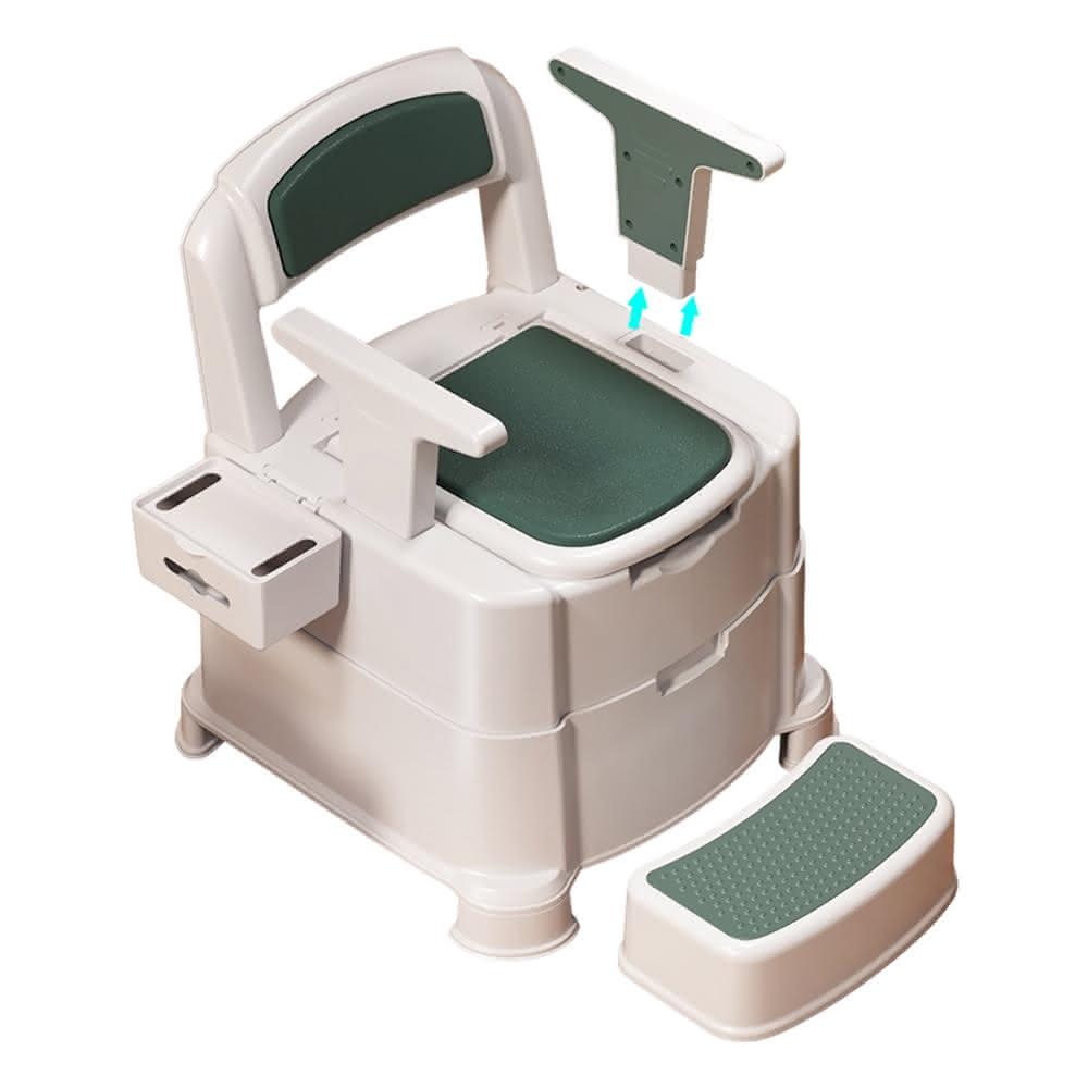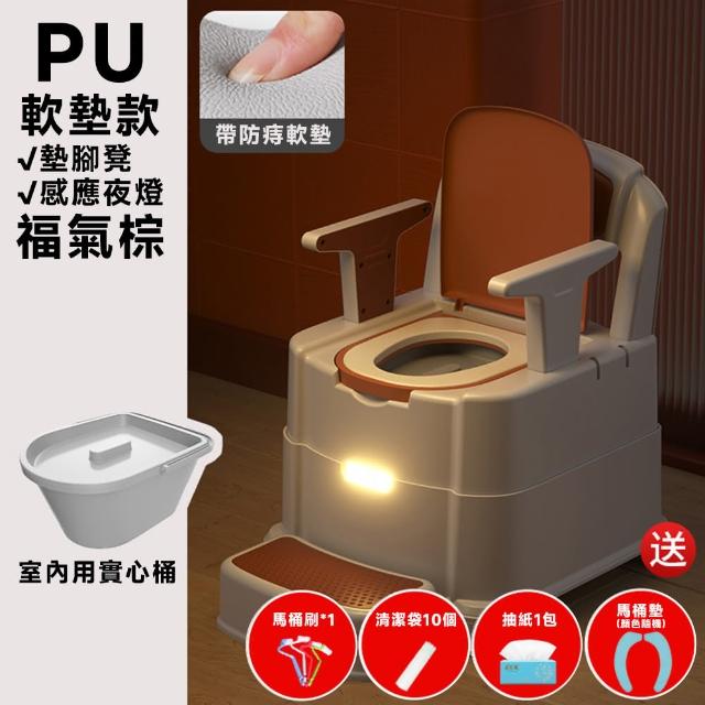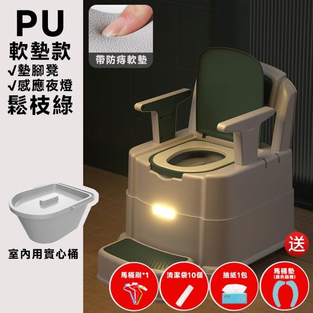 STAR·U星優品牌店 可升降+感應夜燈 帶腳踏送馬桶刷/馬桶墊(坐便器 移動馬桶 行動馬桶 掀蓋馬桶椅 年人起夜尿桶 移動廁所 坐便椅)