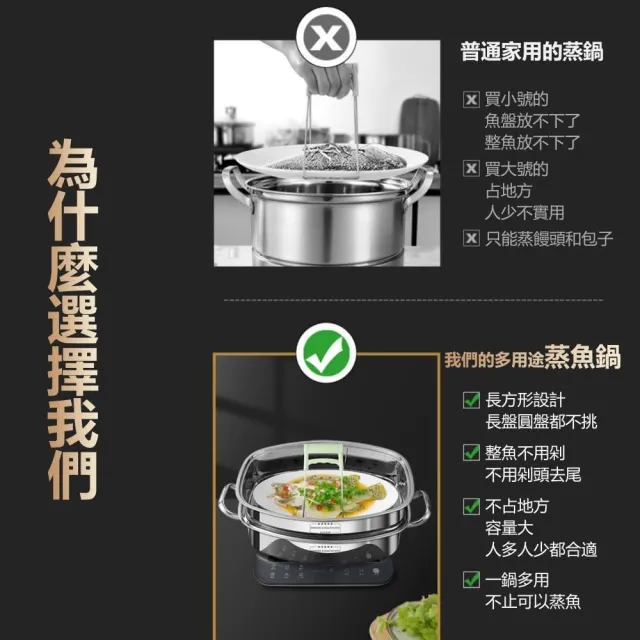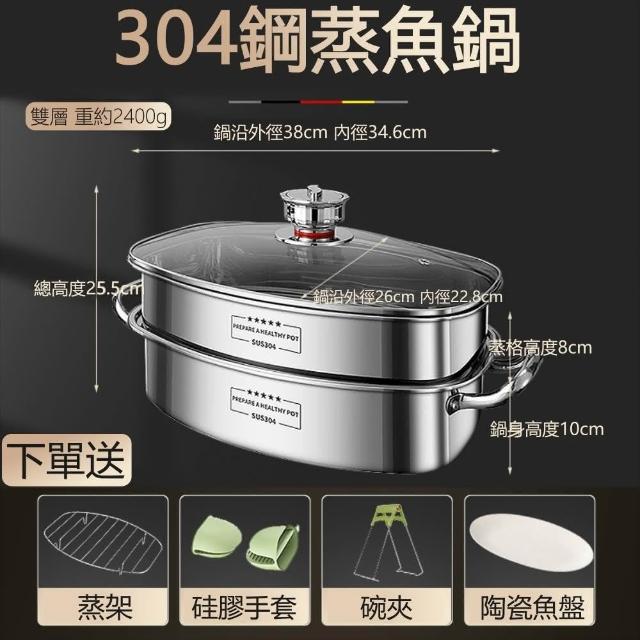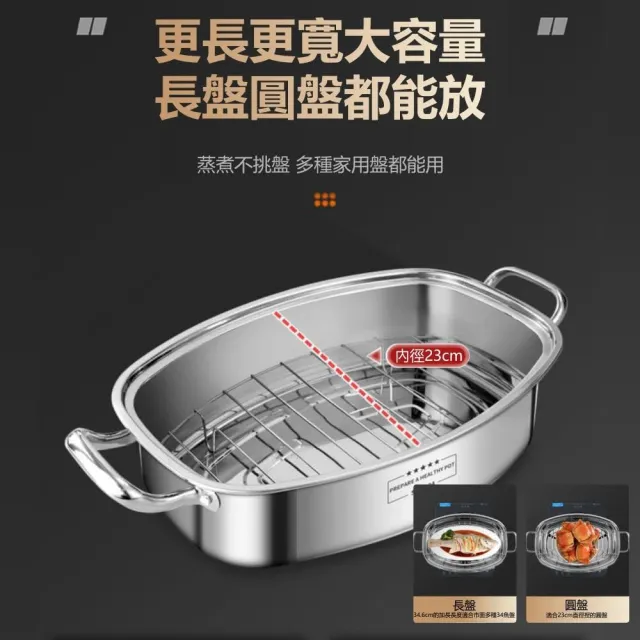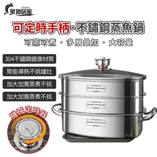 STAR·U星優品牌店 蒸鍋 蒸魚鍋 不鏽鋼蒸鍋 蒸籠 定時蒸鍋 橢圓蒸魚鍋(304食品級不鏽鋼 定時提醒功能 雙層)