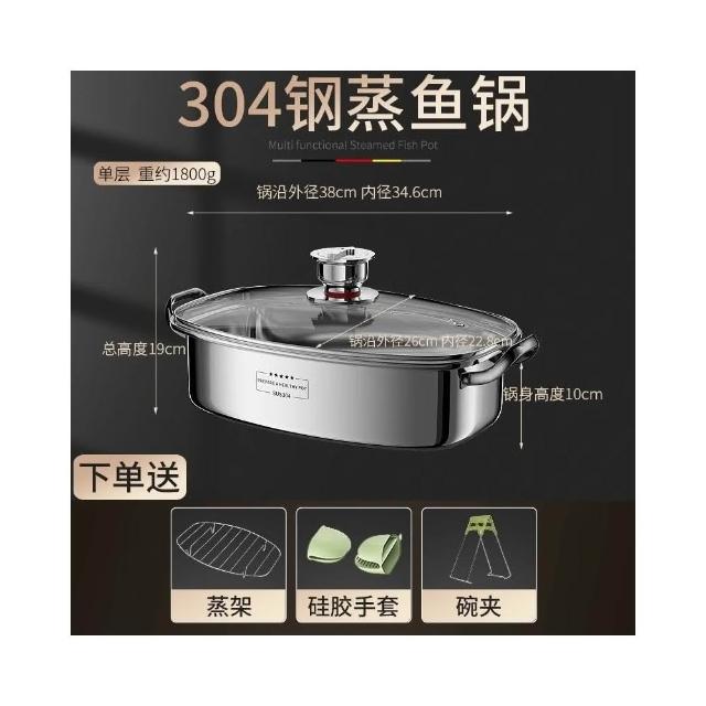STAR·U星優品牌店 蒸鍋 蒸魚鍋 不鏽鋼蒸鍋 蒸籠 定時蒸鍋 橢圓蒸魚鍋(304食品級不鏽鋼 定時提醒功能 雙層)