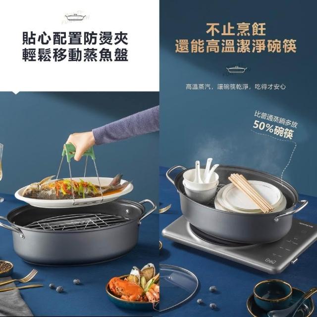 STAR·U星優品牌店 蒸魚鍋 蒸鍋 304不鏽鋼橢圓蒸鍋 清蒸魚專用鍋 不鏽鋼蒸籠(伸縮蒸架+漏孔滴蓋 39cm)