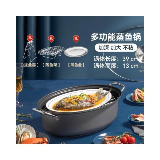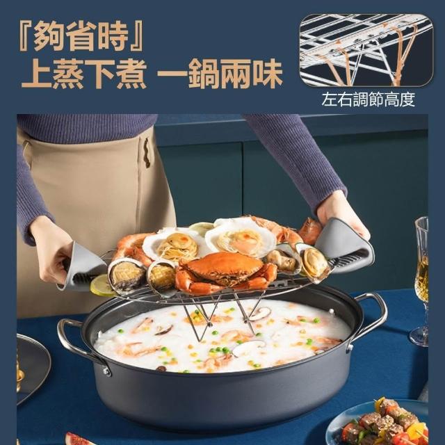 STAR·U星優品牌店 蒸魚鍋 蒸鍋 304不鏽鋼橢圓蒸鍋 清蒸魚專用鍋 不鏽鋼蒸籠(伸縮蒸架+漏孔滴蓋 39cm)