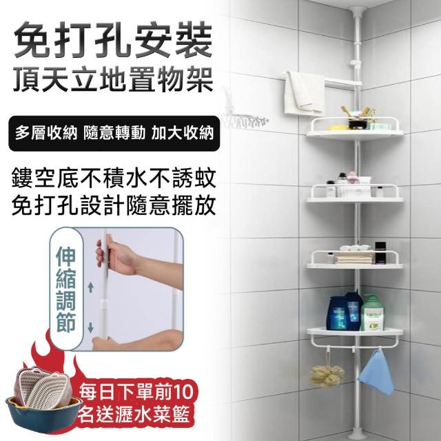 STAR·U星優品牌店 頂天立地置物架 伸縮桿 浴室置物架 免打孔置物架(單層承重5KG 四/五托盤帶毛巾架)