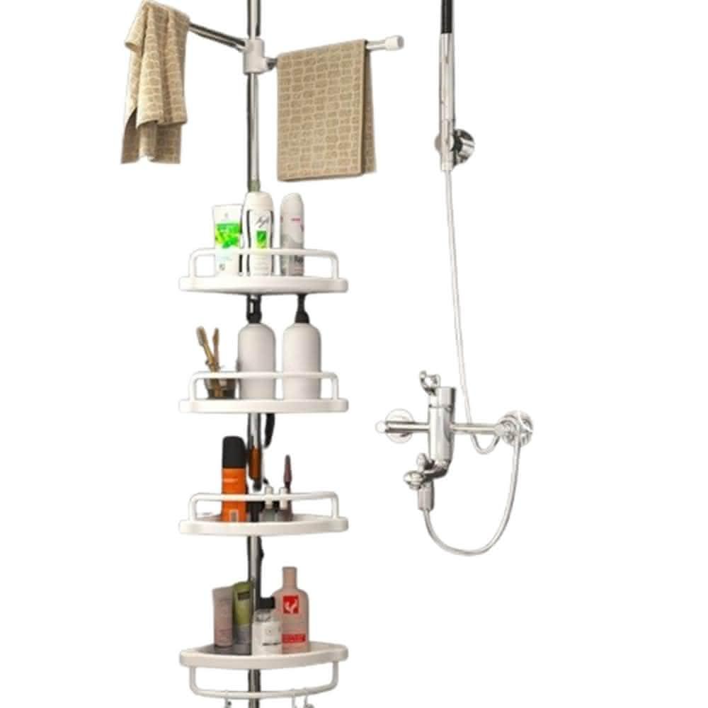 STAR·U星優品牌店 頂天立地置物架 伸縮桿 浴室置物架 免打孔置物架(單層承重5KG 四/五托盤帶毛巾架)