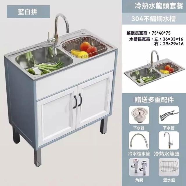 STAR·U星優品牌店 水槽 廚房水槽 不鏽鋼水槽 洗手槽 洗手台(帶櫃門一體式/單槽雙槽可選擇/全新升級碳纖維板材)