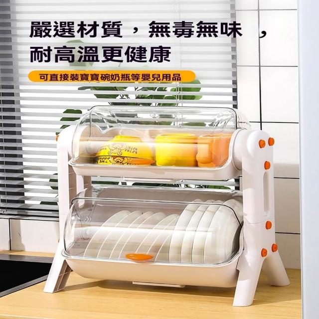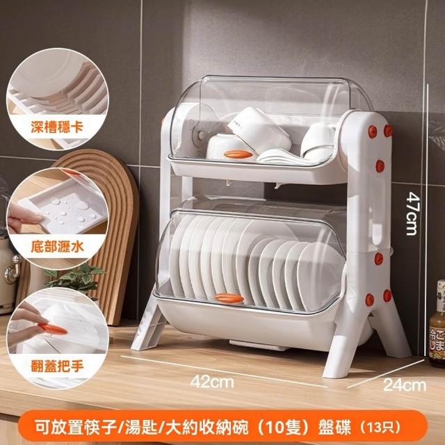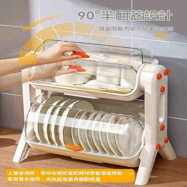 廚房置物架 瀝水架 碗碟架 不鏽鋼置物架 洗碗池收納架 水槽瀝水架(雙層加大容量/90°半翻蓋設計)
