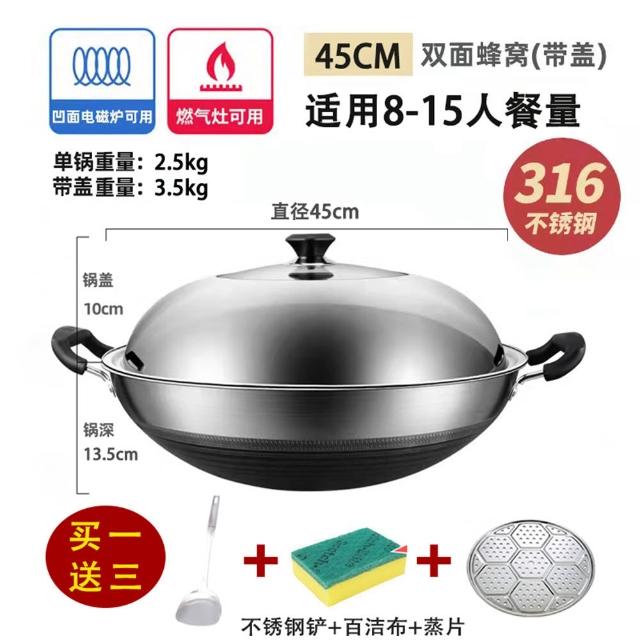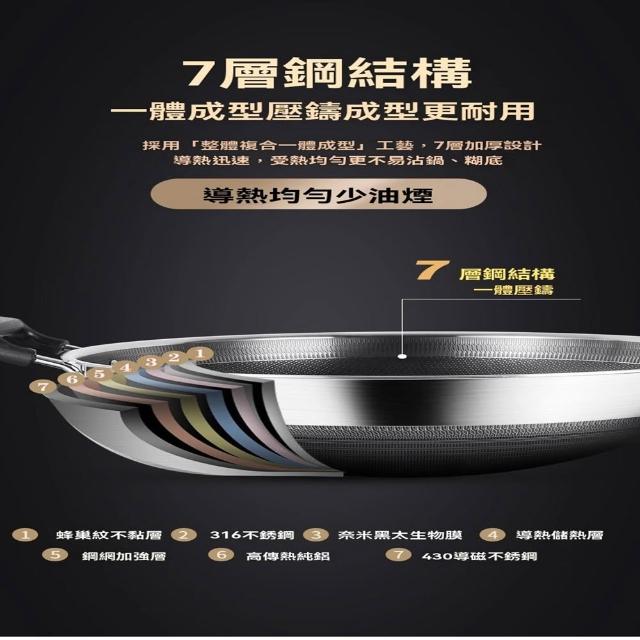 STAR·U星優品牌店 316不鏽鋼炒鍋 雙耳炒鍋 爆炒大鍋 明火/凸面電磁爐專用 炒菜鍋 家用炒鍋(蜂窩紋高溫物理不粘)