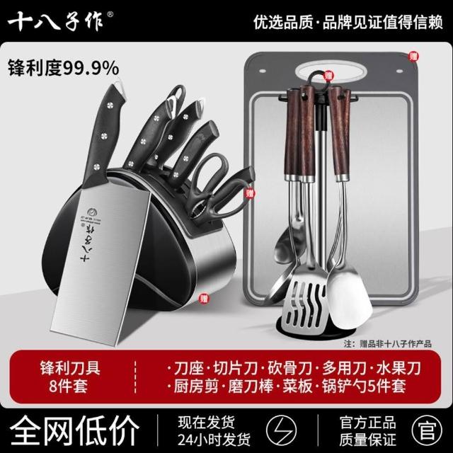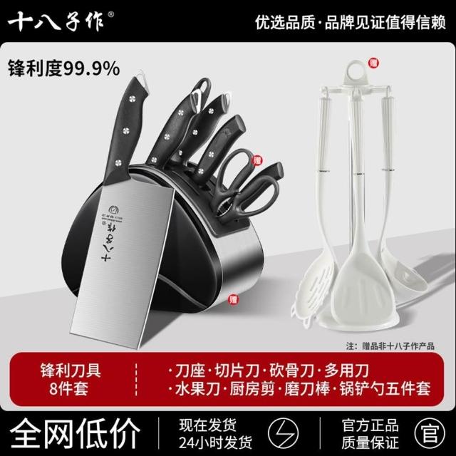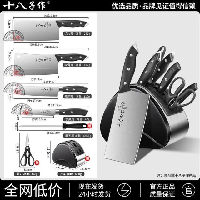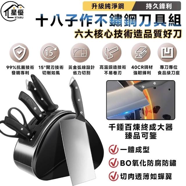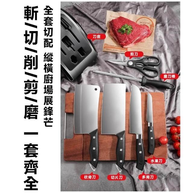 STAR·U星優品牌店 刀具套裝 不鏽鋼切片刀 砍骨刀 菜板全組合刀具 廚房菜刀 刀架(贈磨刀棒/不鏽鋼刀架插座)