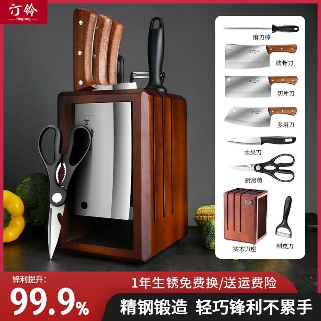 STAR·U星優品牌店 實木刀具組 廚房全套刀具組合 高錳鋼材質 水果刀 切片刀 砍骨刀 刀架 刀具 直插式菜刀組(輕巧鋒利不累手)
