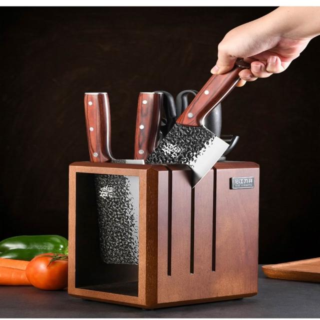 STAR·U星優品牌店 實木刀具組 廚房全套刀具組合 高錳鋼材質 水果刀 切片刀 砍骨刀 刀架 刀具 直插式菜刀組(輕巧鋒利不累手)