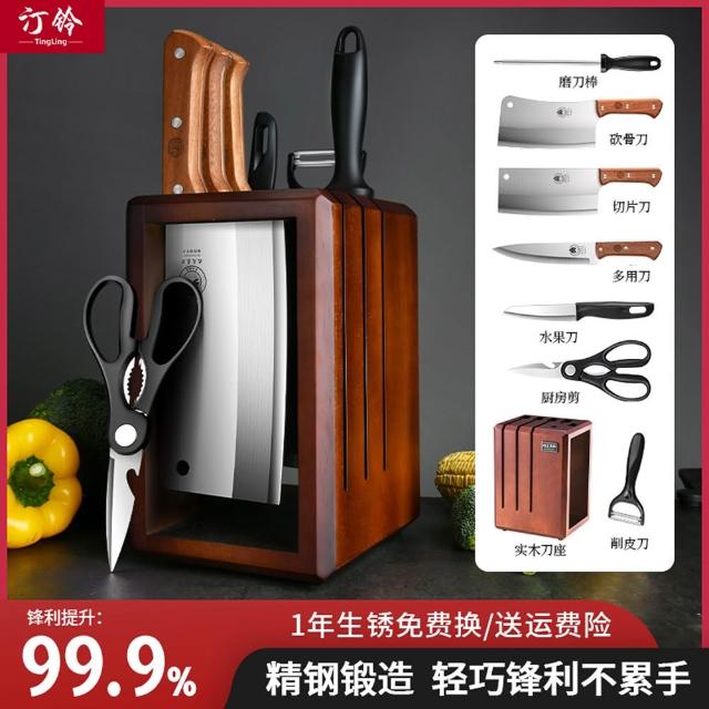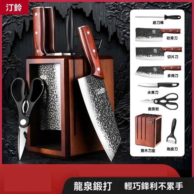 STAR·U星優品牌店 實木刀具組 廚房全套刀具組合 高錳鋼材質 水果刀 切片刀 砍骨刀 刀架 刀具 直插式菜刀組(輕巧鋒利不累手)