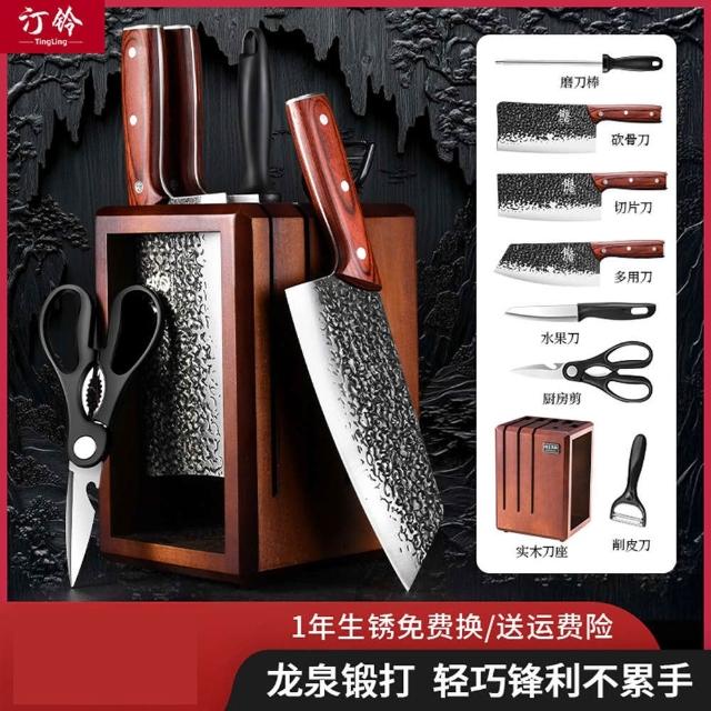 STAR·U星優品牌店 實木刀具組 廚房全套刀具組合 高錳鋼材質 水果刀 切片刀 砍骨刀 刀架 刀具 直插式菜刀組(輕巧鋒利不累手)