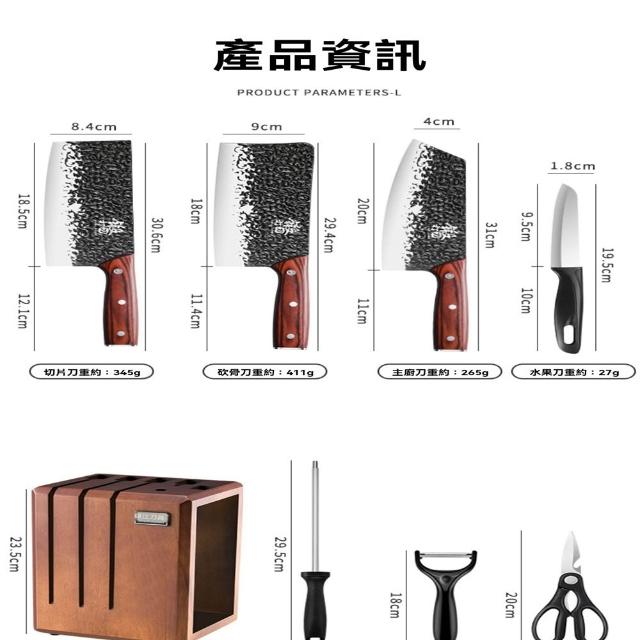 STAR·U星優品牌店 實木刀具組 廚房全套刀具組合 高錳鋼材質 水果刀 切片刀 砍骨刀 刀架 刀具 直插式菜刀組(輕巧鋒利不累手)